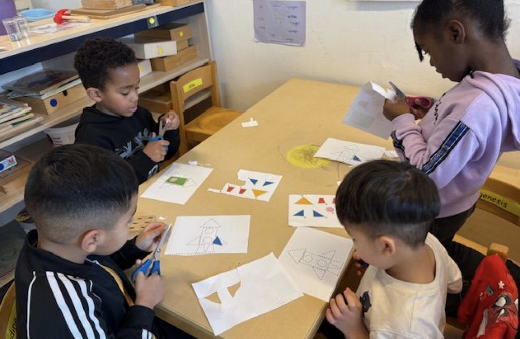 In de klas deden de leerlingen verschillende activiteiten waarbij doorzetten belangrijk was. Zo oefenden sommige leerlingen met het schrijven van hun naam zonder naamkaartje. Ook gingen de leerlingen aan de slag met knipwerk: ze mochten figuren uitknippen, wat voor sommigen nog best lastig was. Door te blijven oefenen lukte het steeds beter. Wanneer een doel was behaald, mochten de leerlingen trots een sticker plakken.